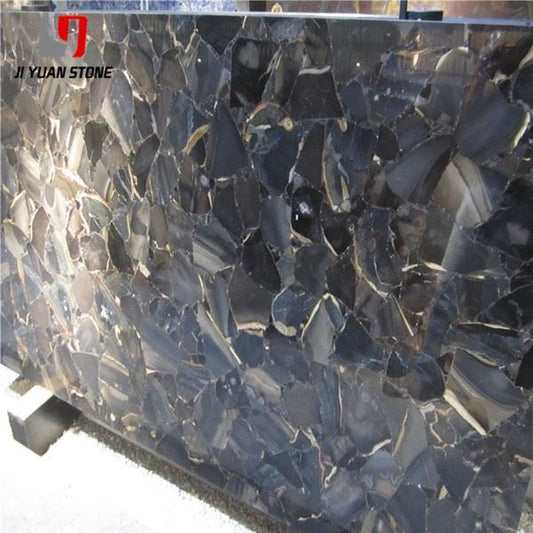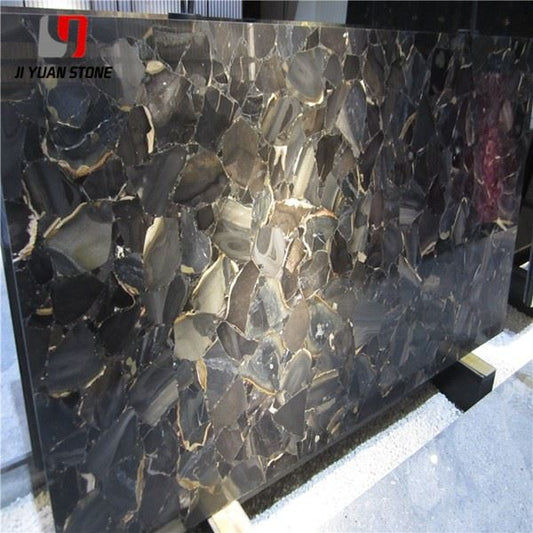 Dalle de pierre précieuse noire translucide