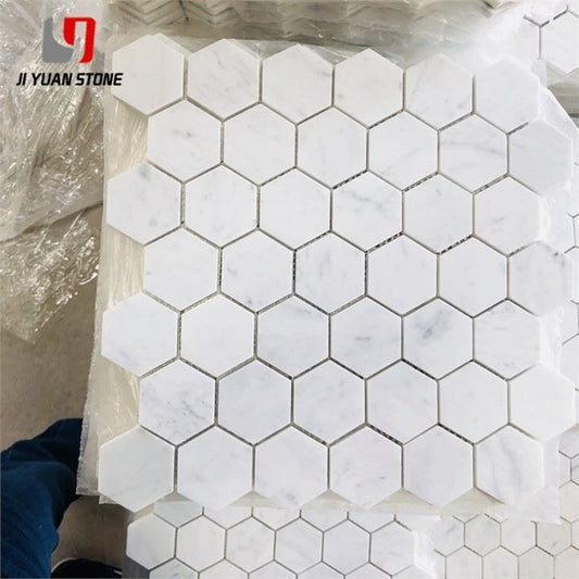 Mosaïque hexagonale dorée Calacatta